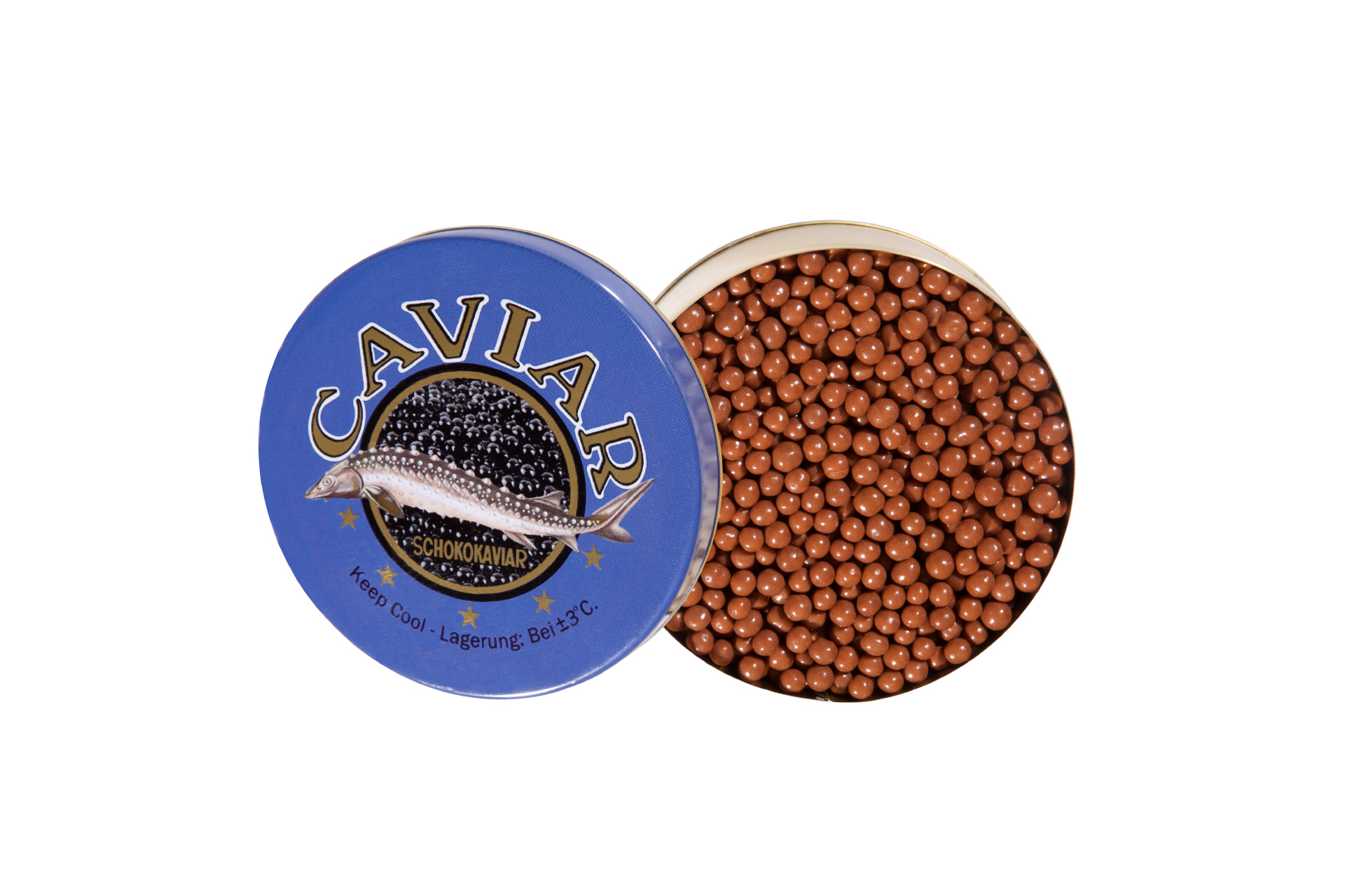 Die edle, originale Schokokaviar-Dose überzeugt durch ihr hochwertiges Design und ist optional auch mit dekorativem Gummiband erhältlich, wodurch sie sofort als Geschenk einsatzbereit ist.