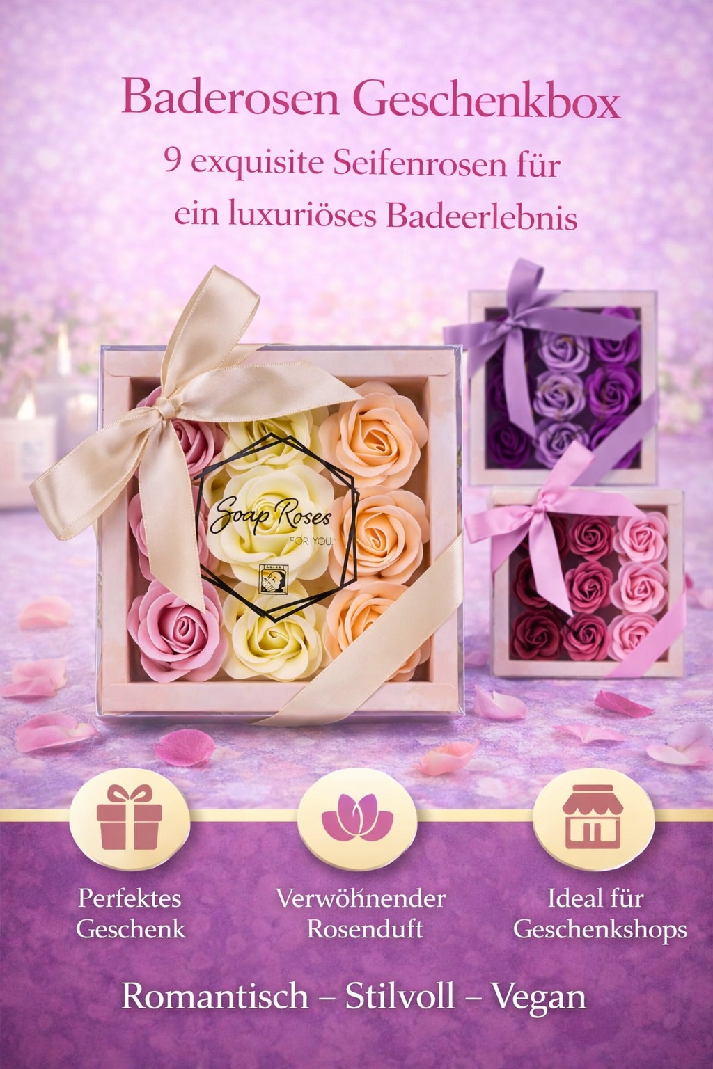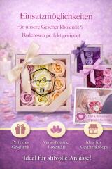 Mit der 9er Baderosen Geschenkbox verschenkst du pure Entspannung und stilvolle Eleganz.