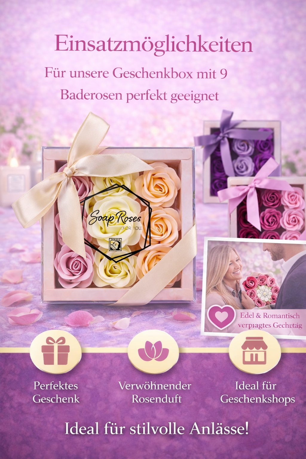 Die fein gearbeiteten Seifenrosen sehen aus wie echte Blüten, verströmen einen herrlichen Rosenduft und verwandeln jedes Bad in ein luxuriöses Spa-Erlebnis.
