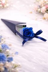 Die Blaue Seifenrose in edler Geschenkbox steht für Eleganz, Exklusivität und außergewöhnlichen Stil. Ihre intensive blaue Farbe macht sie zu einem echten Blickfang – außergewöhnlich, modern und edel zugleich.