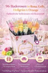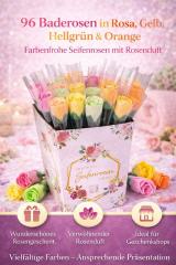Mit den 96 Baderosen in Rosa, Gelb, Hellgrün und Orange bringst du Farbe, Duft und Wohlfühlmomente in perfekter Harmonie zusammen.