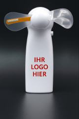 Ja, wir bieten einen individuellen Werbedruck Ihres Firmenlogos auf dem Griff des Ventilators an – wahlweise ein- 2 farbig oder mehrfarbig gegen Aufpreis.